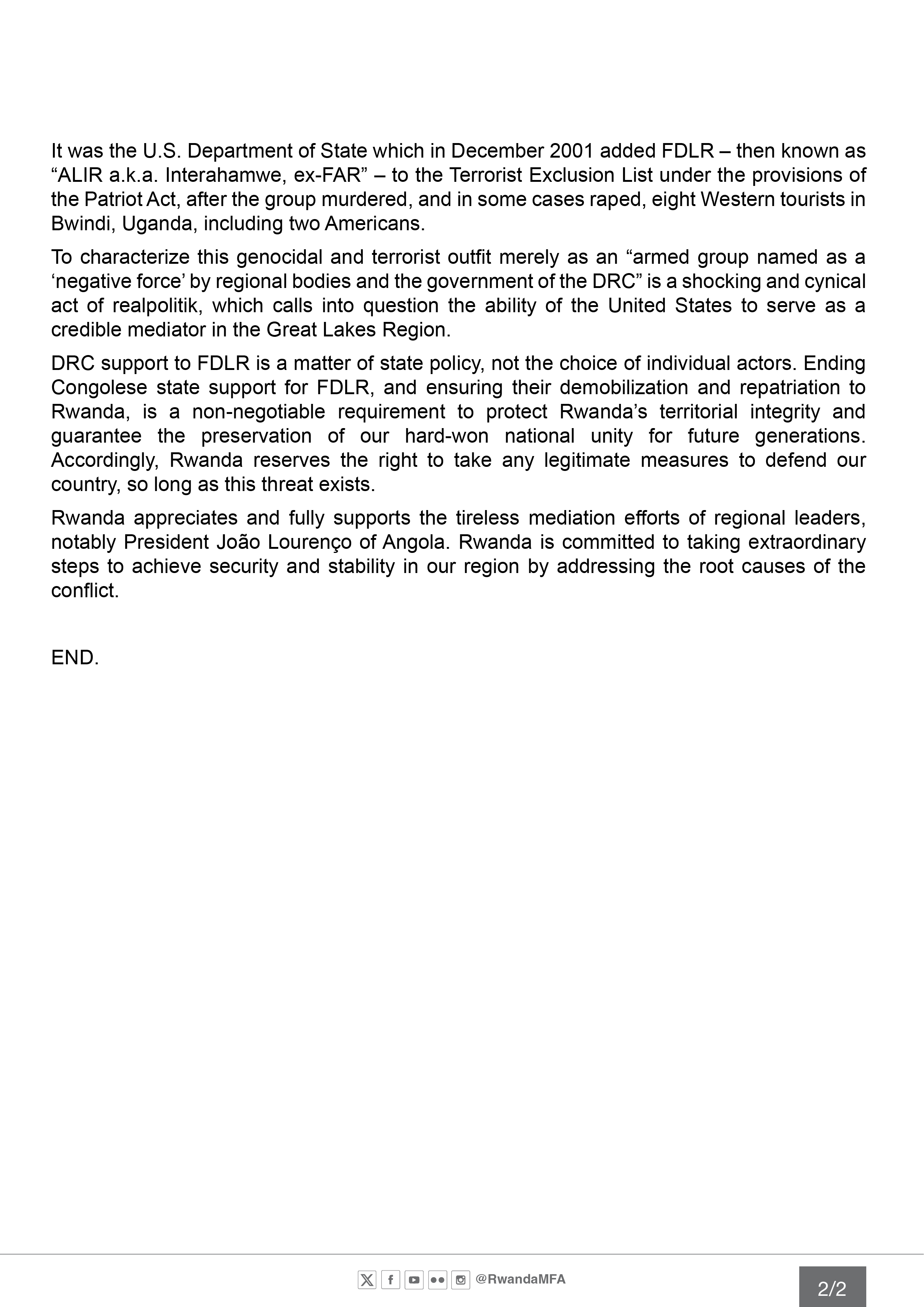 RWANDA CLARIFIES SECURITY POSTURE